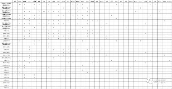 2020赛季中超助理裁判与裁判员搭档执法各项赛事场次记录:横轴为裁判员,纵轴为助理裁判员 (粗体为国际级裁判员)