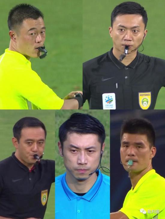5位完成执哨处子秀的裁判员:邢琦、唐顺齐、刘威、黄翼、梁财伟