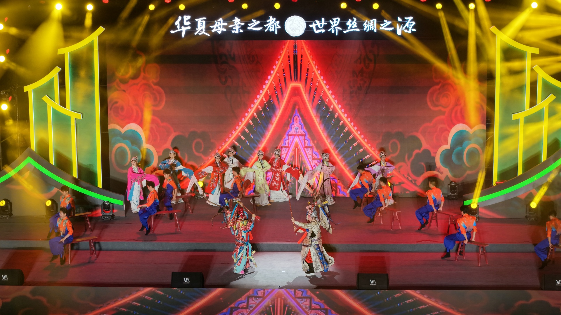 村晚舞台上,绵阳农耕文化、民俗特色节目轮番上演。舞台剧《古今织梦》再现丝绸之源的故事,川剧变脸引得台下阵阵叫好。