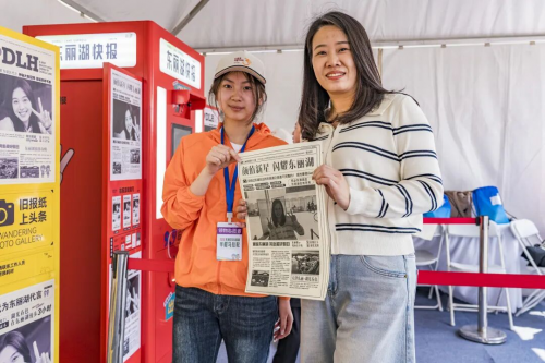 为了让赛事体验更加多元、有趣,本届赛事在起终点设置了多个互动与娱乐装置,将竞技与欢乐完美融合。“欢乐拍报机”成为现场人气最高的打卡点之一,选手只需站上拍照点,系统便会自动生成融合东丽湖标志性风光的“专属报纸头版”影像,并可实时打印带走,定格属于自己的高光时刻;起终点处的实时弹幕墙、数字人互动问答和乐队表演,则营造出热烈、互动、沉浸式的现场氛围。此外,组委会还设置了“欢乐娃娃机”互动区,参赛选手可抓取限量版吉祥物“湖东东”与“湖小丽”玩偶,将东丽湖的欢乐记忆带回家。智慧科技与人文关怀的深度融合,让东丽湖半马不仅是一场体育赛事,更是一场可参与、可分享、可珍藏的文体旅嘉年华。