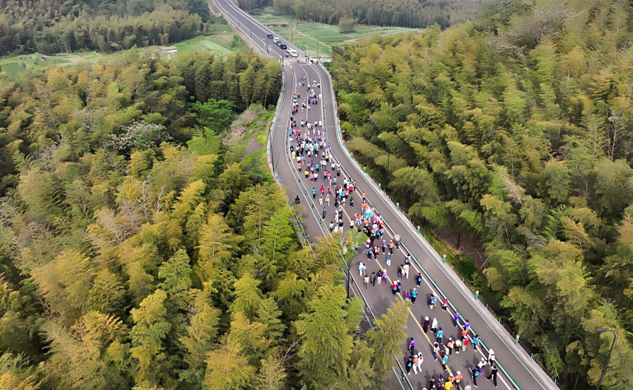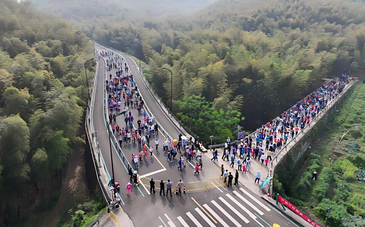 上午8时55分,发令笛声响。徒步爱好者们从竹海大道出发,汇入翠林深处。8公里的徒步路线以柏油路、古道石板路和乡村水泥路为主,串联起梅坞岭古道、杉林小道、澄湖望湖台、虎门沟、聚贤台、石雪庵遗迹等景观节点,累计爬升近250米,无陡峭路段,有徒步之趣而无攀爬之累。当天的参与者中,亲子家庭占比超三成,从白发老人到朝气青年,再到稚龄孩童,各年龄段都有,真正实现了全龄友好。不少参与者还带着宠物一同徒步,为活动增添了别样趣味,也与长塘镇着力打造的宠物友好小镇发展定位相呼应。