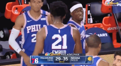 本场比赛第一节,步行者后卫TJ-沃伦就爆发了,把防守他的76人后卫米尔顿打爆。这让大帝非常生气,在一次走回板凳席的过程中,恩比德和米尔顿发生了口角。