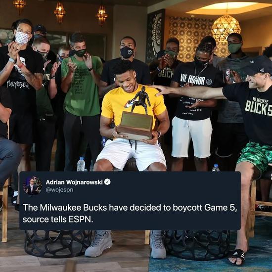 猛龙队率先召开球队会议,认真讨论罢赛事宜,以对种族歧视问题表示抗议,带头罢赛的范弗利特直言:“我们做过抗争,可是根本没有改变什么,不幸的事又发生了。”我想,这也是为什么猛龙要以罢赛形式抗议,赛前祈祷、球衣印标语、穿抗议T-SHIRT,似乎都没有任何用处,而球员们也只能采用最极端的手段来表达他们的不满了。