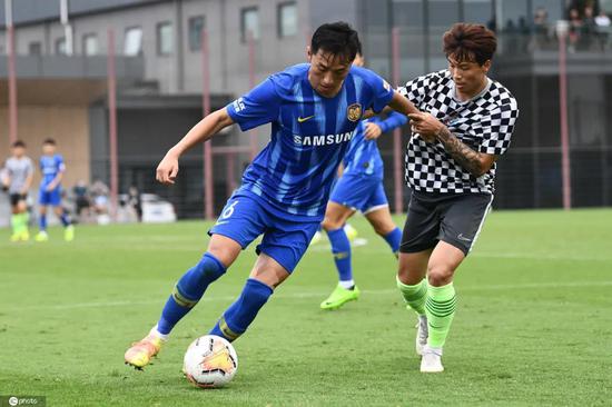 今天下午,江苏苏宁易购队在南京徐庄训练基地与中超新军青岛黄海青港队进行了一场热身赛,球队凭借队长吴曦的世界波进球,1-0战胜对手!热身赛取得三胜一平,保持不败。