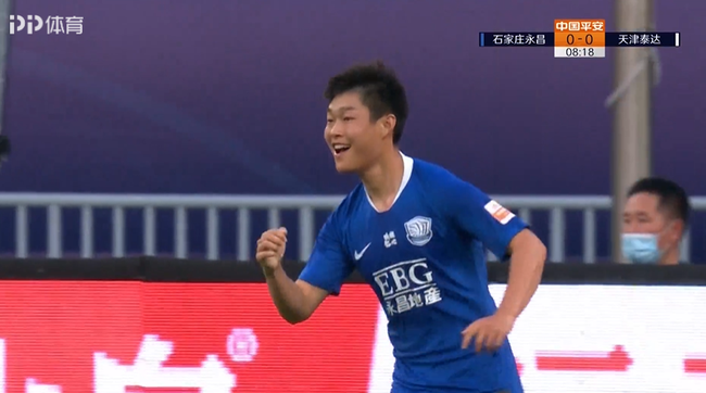 北京时间8月11日,中超联赛第四轮继续进行,石家庄永昌迎战天津泰达,比赛第9分钟,永昌打出流畅配合,郑致云边路送出传中,后点小将钟纪宇推射空门得手,永昌1-0泰达。